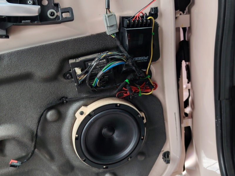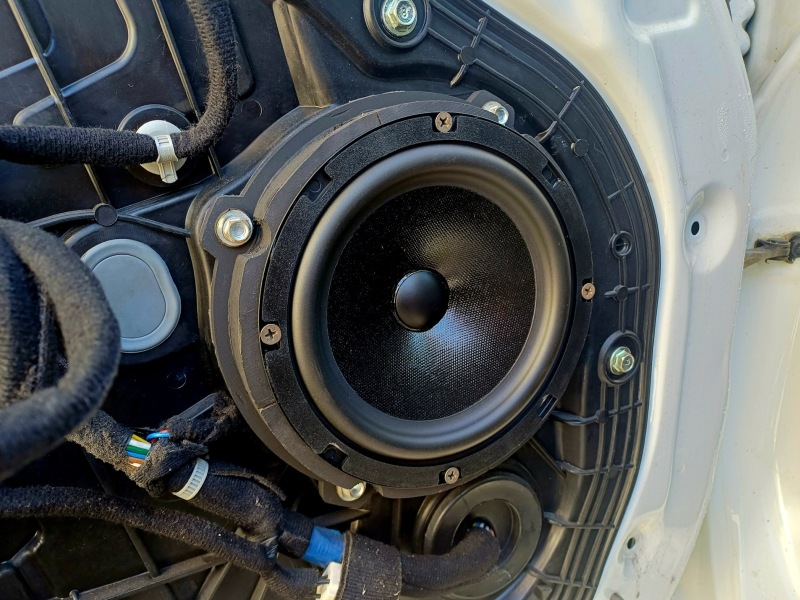 По параметрам – нормальные «дверные» динамики. Подвижки относительно лёгкие, так что моторы с ними справляются играючи, и чувствительность не проседает. Характеристики подвесов (в первую очередь, нижних, т. е. центрирующих шайб) выбраны компромиссно – не скажу, что мягкие, но резонанс высоко не задрался. В общем, эдакая «золотая середина».
